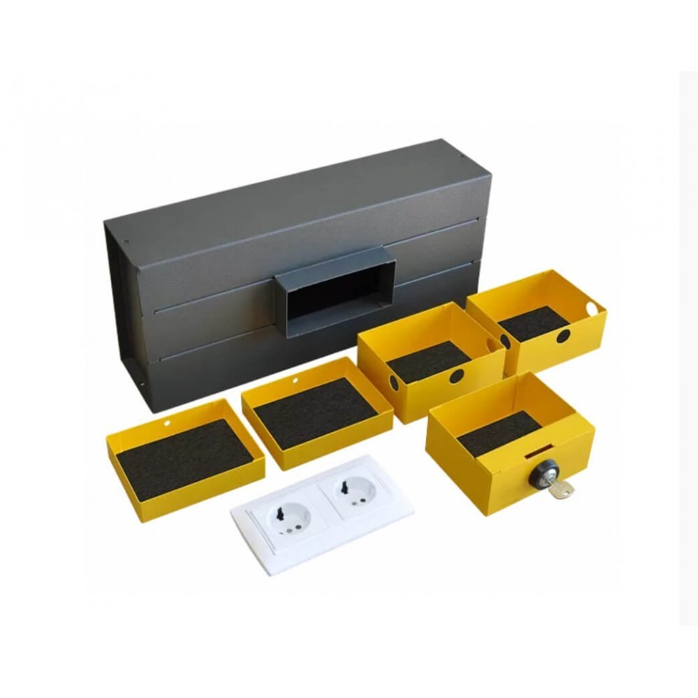 Уникальный сейф-невидимка с телескопическим регулированием высоты изделия (от 201 до 240 мм) под любую глубину стены или пола. Водонепроницаемая крышка для защиты от пыли и грязи особенно актуальна при расположении в полу. Объем 2,8 л.