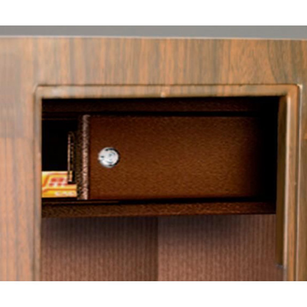 В верхней части корпуса сейфа есть запираемое отделение для патронов.