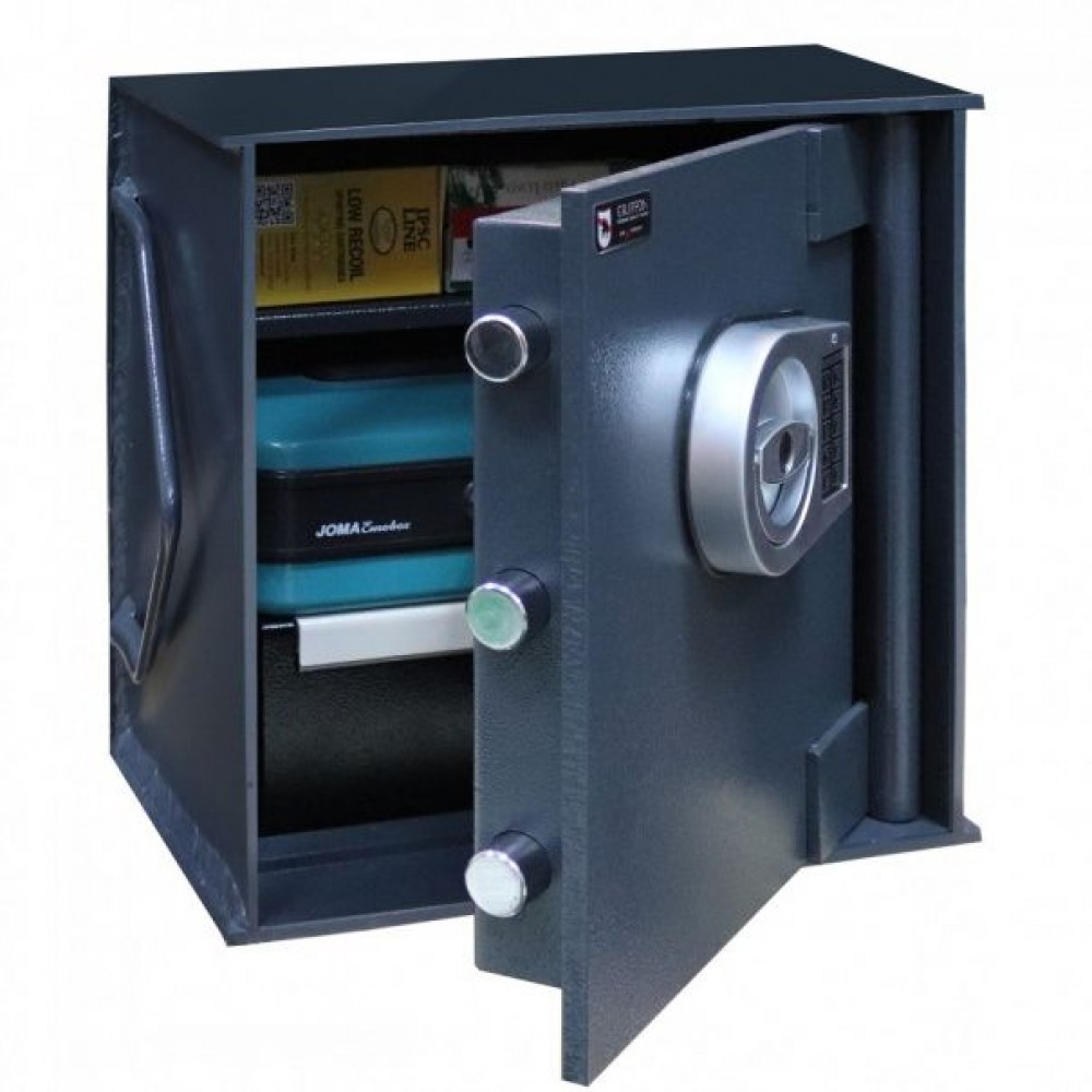 • Оборудован сертифицированным  электронным кодовым сейфовым замком M-LOCKS (Нидерланды), который сертифицирован   VDS 2 класс. С внешней заменой элемента питания.
