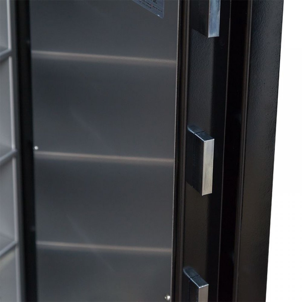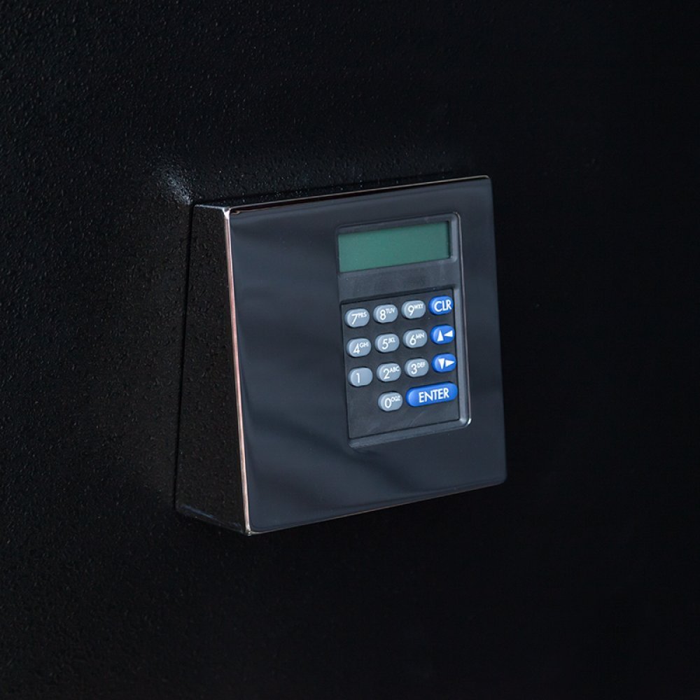 - Усиленная трехсторонняя ригельная система запирания и электронный кодовый замок.