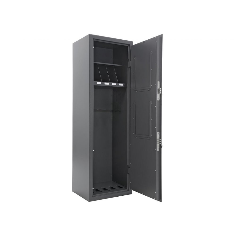 Шкаф армейский оружейный ШХО-1445 5АКМ для упорядоченного хранения до 5 автоматов Калашникова различных модификаций. Широко применяется в силовых и военных структурах. Для обеспечения сохранности имущества сейф ШХО-1445 5АКМ имеет сварную металлическую конструкцию с толщиной стенок 3 мм и комплектуется двумя ключевыми замками с сувальдным механизмом. Армейские шкафы серии ШХО сертифицированы и полностью отвечают требованиям МВД РФ к хранению огнестрельного оружия и боеприпасов.