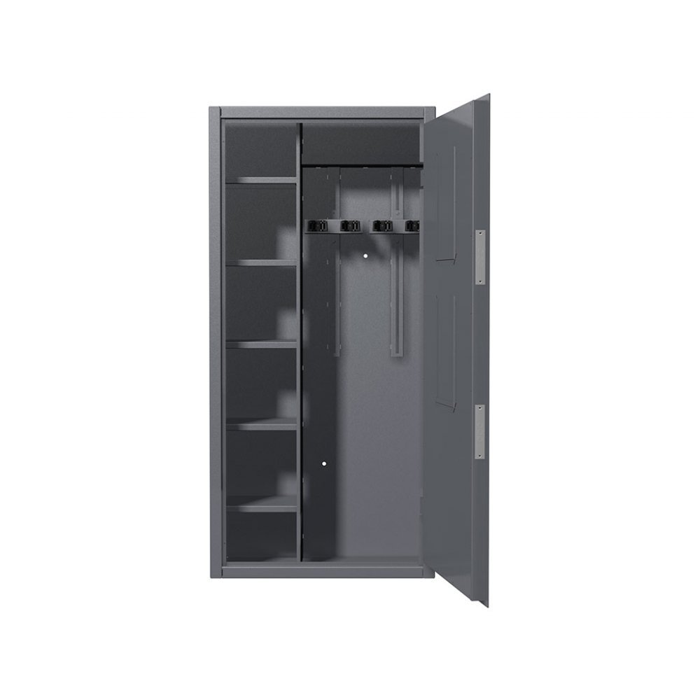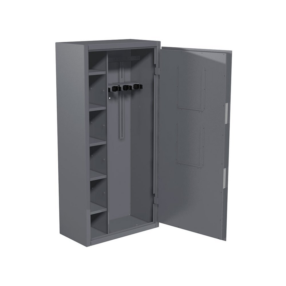 Шкаф армейский оружейный ШХО-1467 УН для упорядоченного хранения до 4 винтовок с оптическим прицелом или пулеметов и боеприпасов к ним. Широко применяется в силовых и военных структурах. Для обеспечения сохранности имущества сейф ШХО-1467 УН имеет сварную металлическую конструкцию с толщиной стенок 3 мм и комплектуется двумя ключевыми замками с сувальдным механизмом. Армейские шкафы серии ШХО сертифицированы и полностью отвечают требованиям МВД РФ к хранению огнестрельного оружия и боеприпасов.