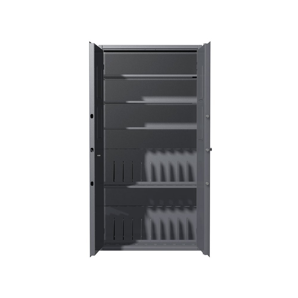 Шкаф армейский оружейный ШХО-20 АКС 74У 39ПУ(51ПМ) для упорядоченного хранения до 20 автоматов Калашникова (АК) различных модификаций и 39 пистолетов на универсальных подставках ПУ. Широко применяется в силовых и военных структурах. Для обеспечения сохранности имущества сейф ШХО-20 АКС 74У 39ПУ(51ПМ) имеет сварную металлическую конструкцию с толщиной стенок 3 мм и комплектуется двумя ключевыми замками с сувальдным механизмом. Армейские шкафы серии ШХО сертифицированы и полностью отвечают требованиям МВД РФ к хранению огнестрельного оружия и боеприпасов.