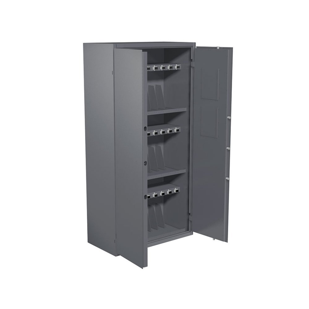 Шкаф армейский оружейный ШХО-30 АКС-74У для упорядоченного хранения павтоматов Калашникова (АК) различных модификаций в количестве до 30 штук. Широко применяется в силовых и военных структурах. Для обеспечения сохранности имущества сейф ШХО-30 АКС-74У имеет сварную металлическую конструкцию с толщиной стенок 3 мм и комплектуется двумя ключевыми замками с сувальдным механизмом. Армейские шкафы серии ШХО сертифицированы и полностью отвечают требованиям МВД РФ к хранению огнестрельного оружия и боеприпасов.