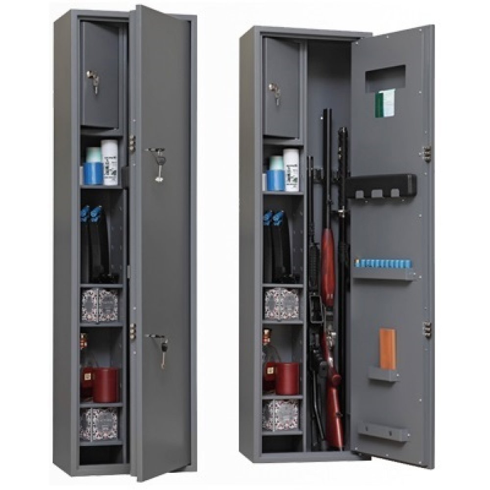 Оружейный шкаф Onix MINI-2Ms предназначен для хранения пяти длинноствольных ружей. Имеет одностороннюю систему запирания и оснащен двумя ключевыми замками. В шкафу предусмотрена возможность его крепления к полу или стене. Шкаф комплектуется трейзером для удобного хранения боеприпасов и мелких вещей. На внутренней стороне двери имеются карманы. Количество ложементов: 3 (два опционально можно установить на место снятых полок)