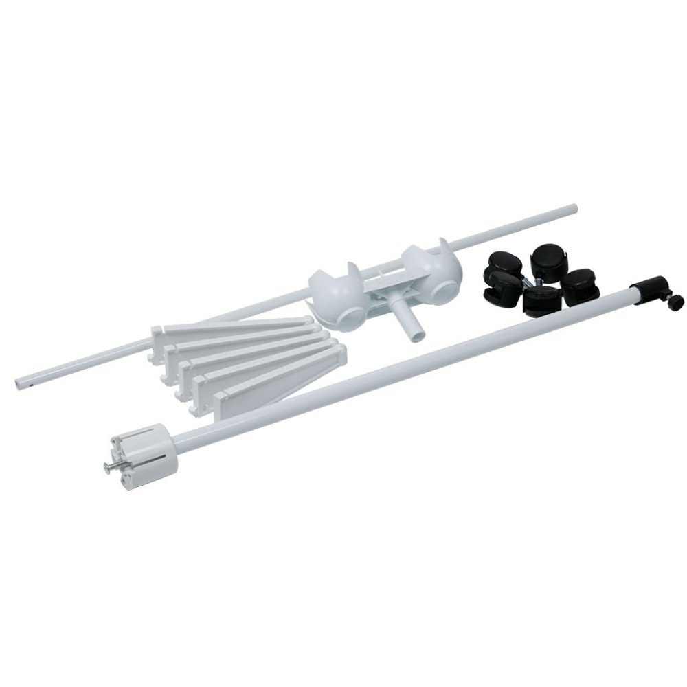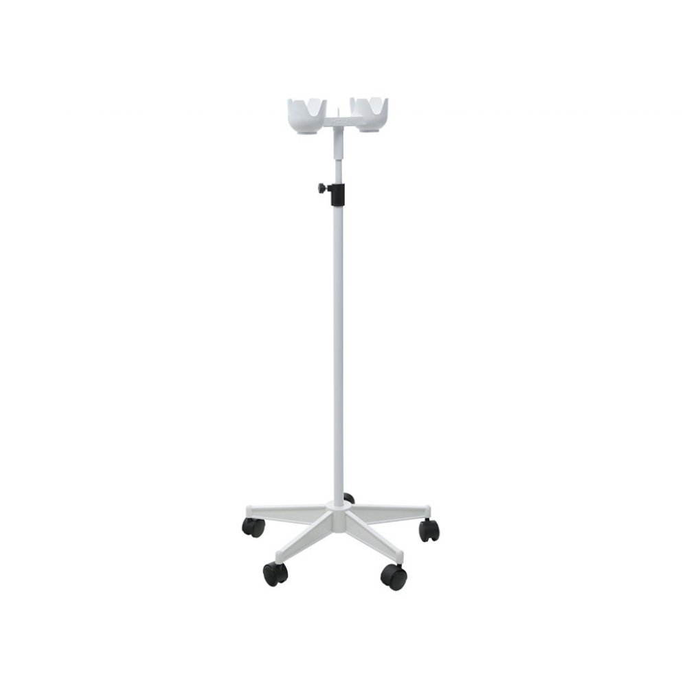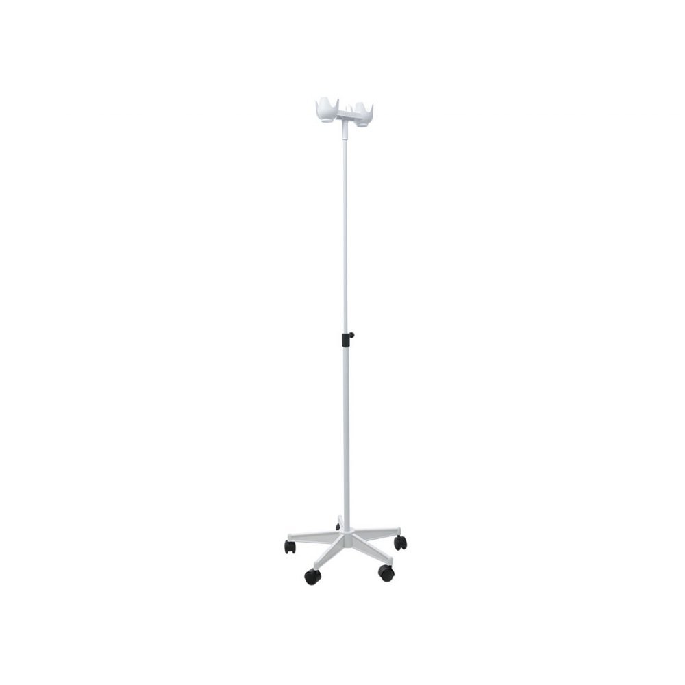 - Стойка выполнена из стальной трубы Ø16*1,5 мм, Ø25*1,5 мм и окрашена порошковой полиэфирной краской. Флаконодержатель выполнен из пластика белого цвета. Лучи основания выполнены из полиамида. Основание сборно-разборное