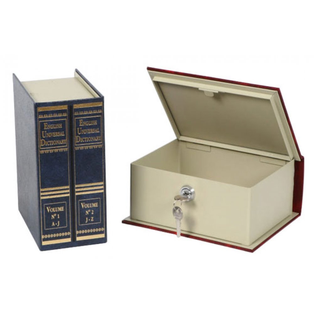 - Корпус изготовлен из стали и выполнен в виде книги, что делает возможным использование его в виде тайника.