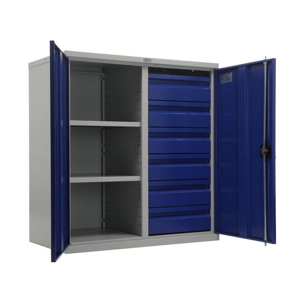 Инструментальные шкафы TC-1095 можно смоделировать и индивидуально скомпоновать под свои нужды, выбрав необходимые вам комплектующие: перегородки, выдвижные ящики, полки или перфорированные экраны.