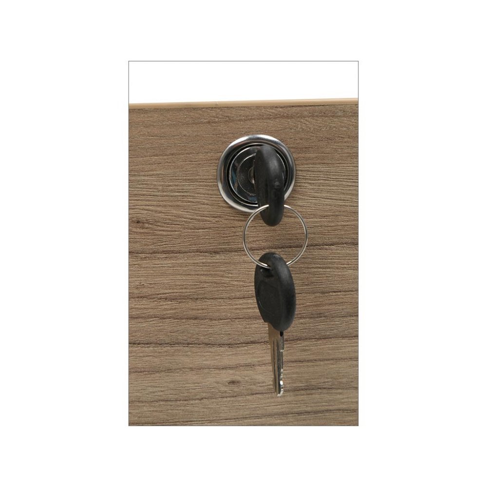 - тумба снабжена центральным замком и оснащена пластмассовым лотком для канцелярских принадлежностей в верхнем ящике