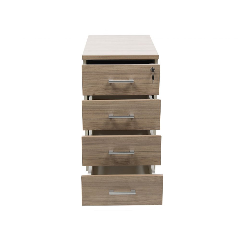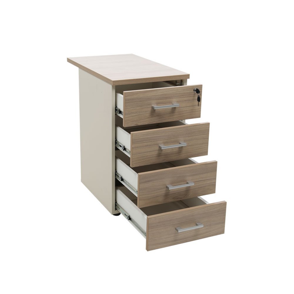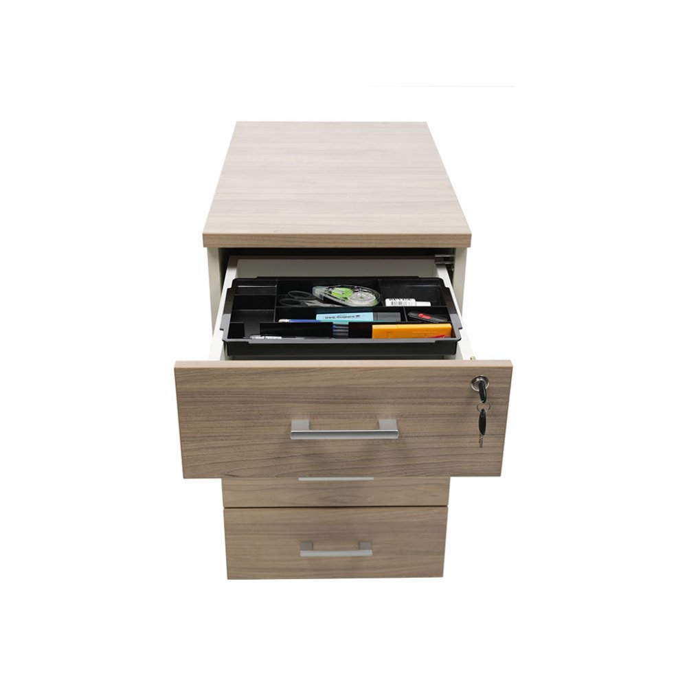 - тумба снабжена центральным замком и оснащена пластмассовым лотком для канцелярских принадлежностей в верхнем ящике