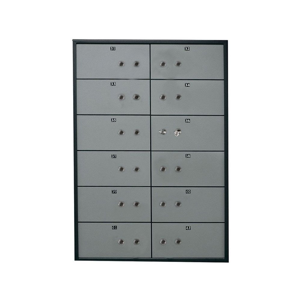 двери оснащены двухключевыми замками с двумя скважинами, один ключ является мастер-ключом банка, другой ключ предназначен для клиента