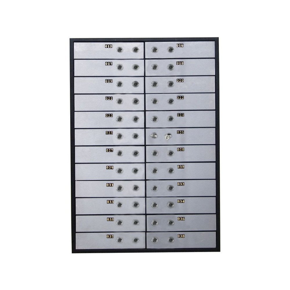 двери оснащены двухключевыми замками с двумя скважинами, один ключ является мастер-ключом банка, другой ключ предназначен для клиента