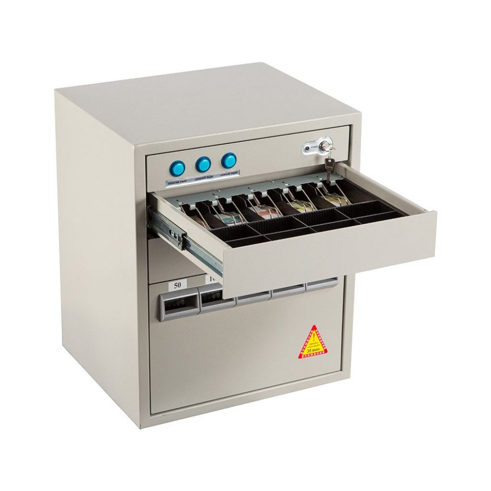 Предназначена для безопасного хранения банкнот, монет, пластиковых карт, чеков, различных ценных бумаг и прочих документов в течение рабочего дня