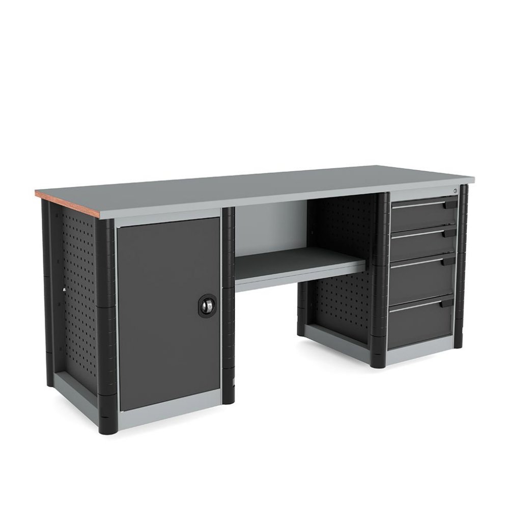 - Боковые прорезиненные бампера на тумбе и опоре защищают торцы верстака от непреднамеренного повреждения