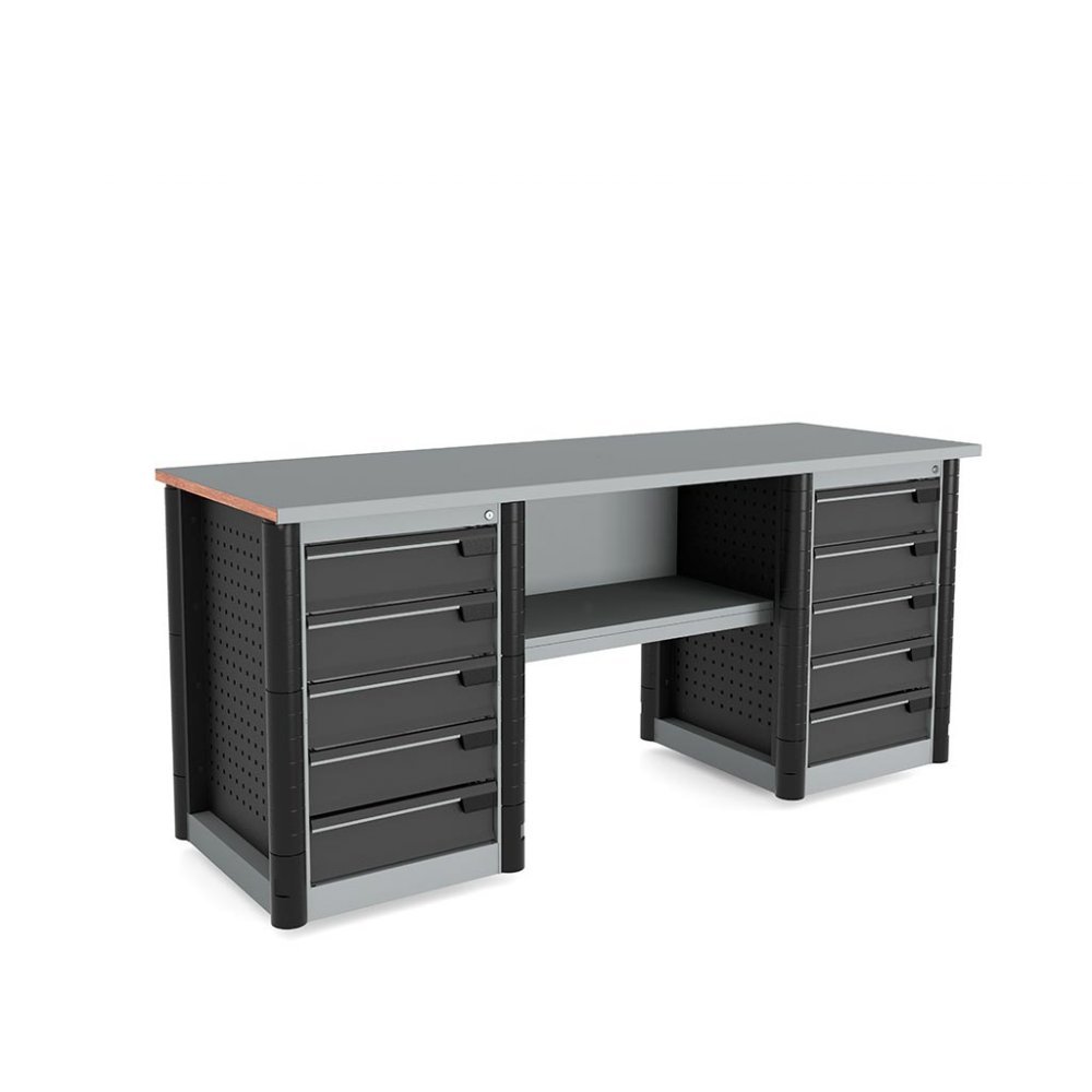 - Боковые прорезиненные бампера на тумбе и опоре защищают торцы верстака от непреднамеренного повреждения