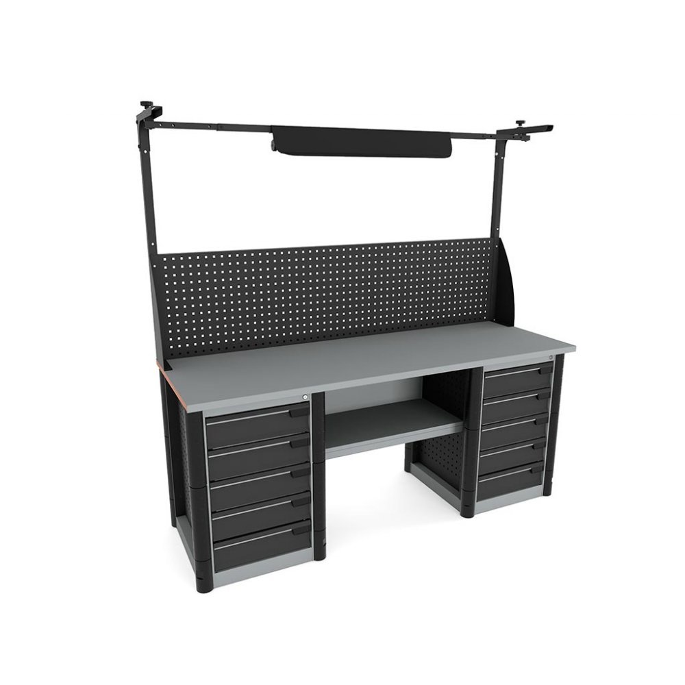 - Боковые прорезиненные бампера на тумбе и опоре защищают торцы верстака от непреднамеренного повреждения