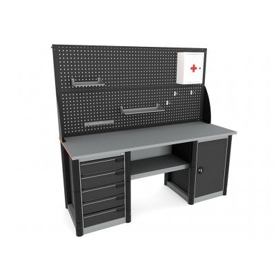 - Боковые перфорированные стенки тумбы и опоры позволяют размещать на них различные стандартные аксессуары