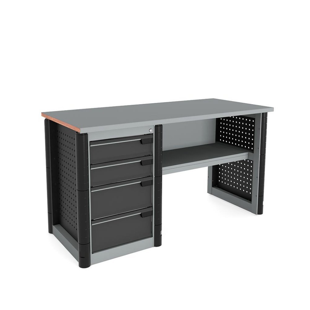 - Боковые прорезиненные бампера на тумбе и опоре защищают торцы верстака от непреднамеренного повреждения