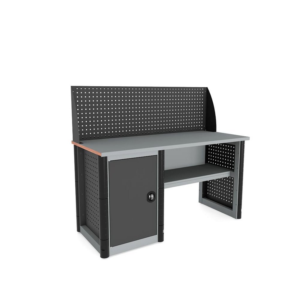 - Боковые перфорированные стенки тумбы и опоры позволяют размещать на них различные стандартные аксессуары