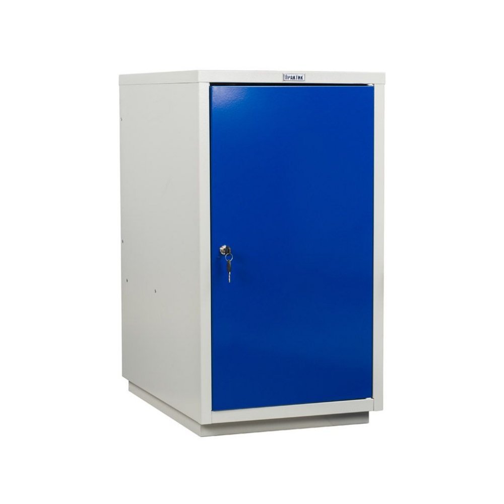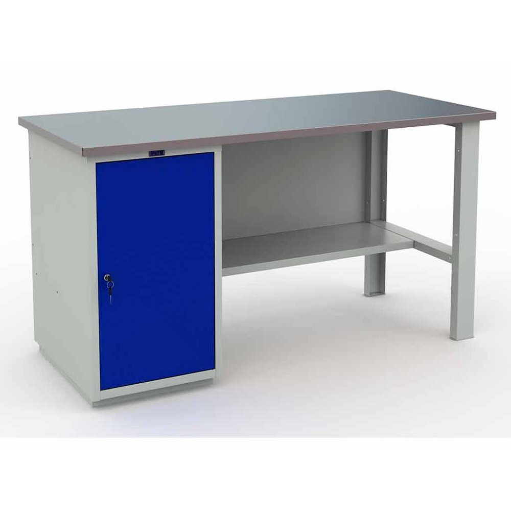 - Верстак окрашен порошковой краской, цвет покрытия корпуса серый шагрень (RAL 7038), лицевая панель дверцы тумбы – синий шагрень (RAL 5002)