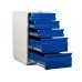 - Тумба WD5 укомплектована 5-ю выдвижными ящиками. Ящики открываются на телескопических направляющих. Нагрузка на ящик 30 кг. Все ящики закрываются на центральный ключевой замок.