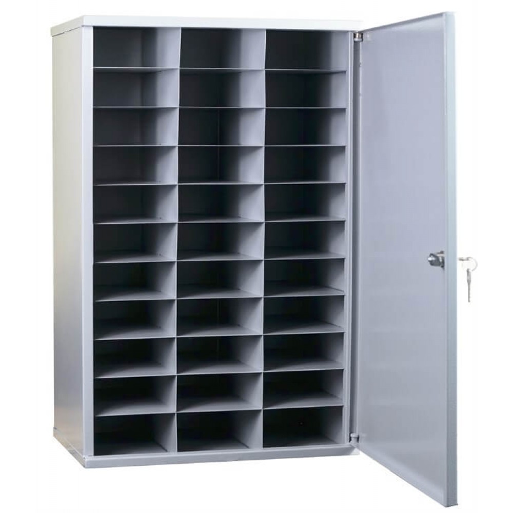 Металлический многосекционный шкаф для хранения сотовых телефонов или гаджетов в школах, государственных учреждениях или гостиницах. Цельносварной металлический корпус, ячейки с индивидуальными ключевыми замками. Внешние размеры шкафа (ВхШхГ) 650х400х250 мм. Внутренний размер ячейки хранения (ВхШхГ) 55х120х220 мм. Толщина металла 0,7-1 мм. Вес 12 кг.